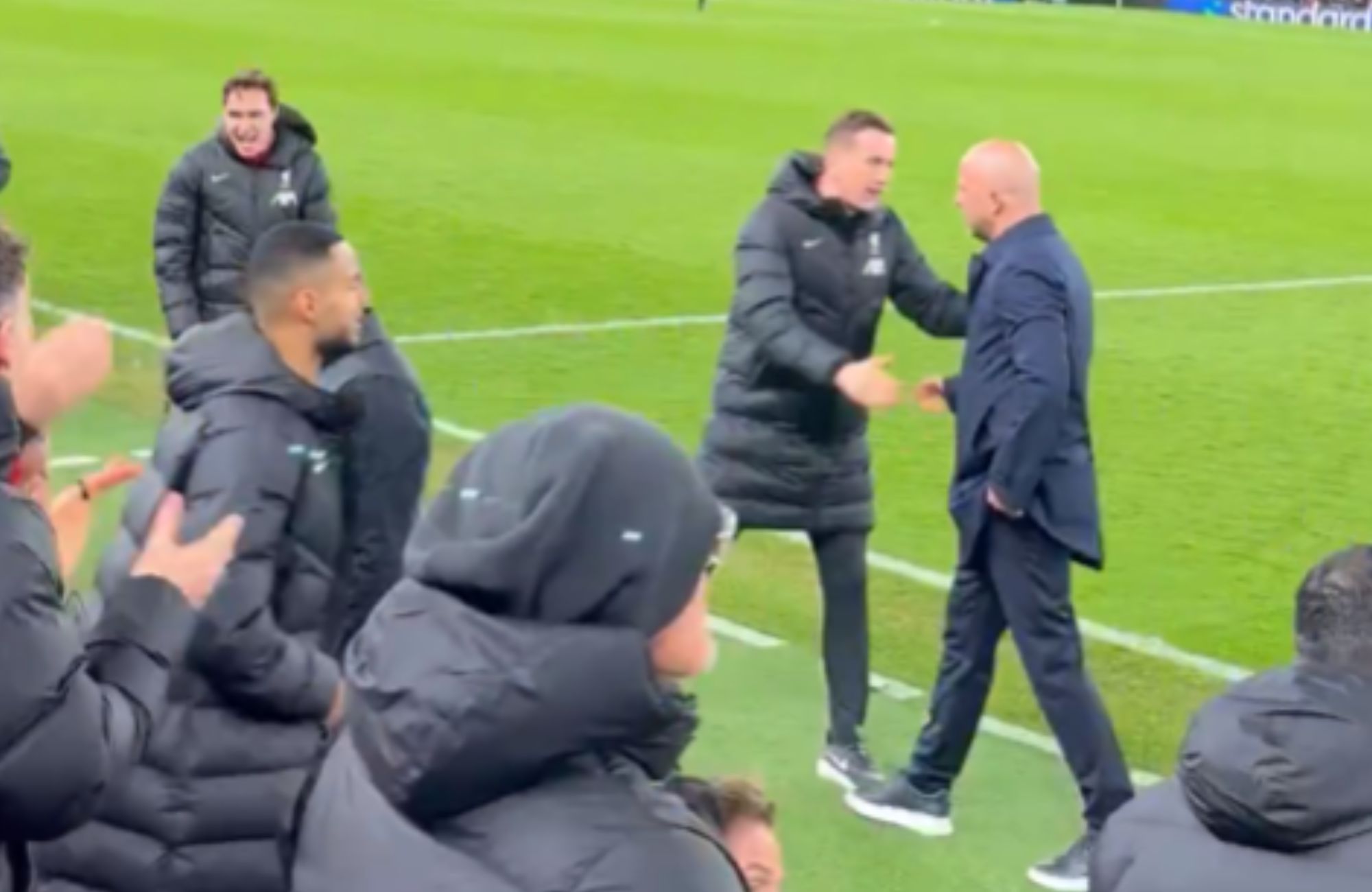 @asim_lfc caught the wild touchline scenes as Liverpool managed to secure a potentially valuable point in the title race. Cody Gakpo was even spotted partially entering the pitch, saluting his teammates with a fist-pump before retreating back to the bench.